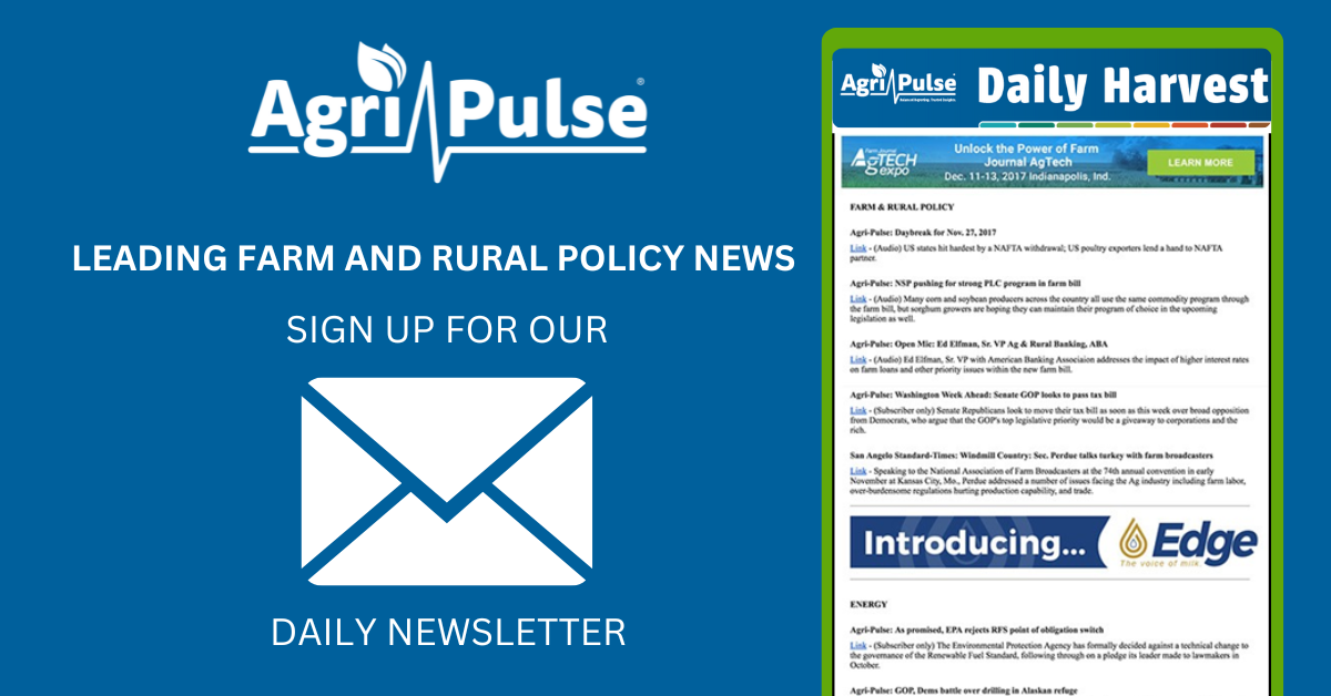Daily Harvest: Daily email blast of breaking news aggregated from Agri-Pulse & other leading sources. A mustread resource for anyone needing to stay current on the latest ag & food policy news!